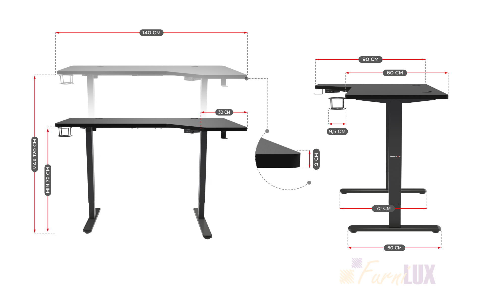 - Duży zakres regulacji: blat na wysokości od 72 do aż 120 cm