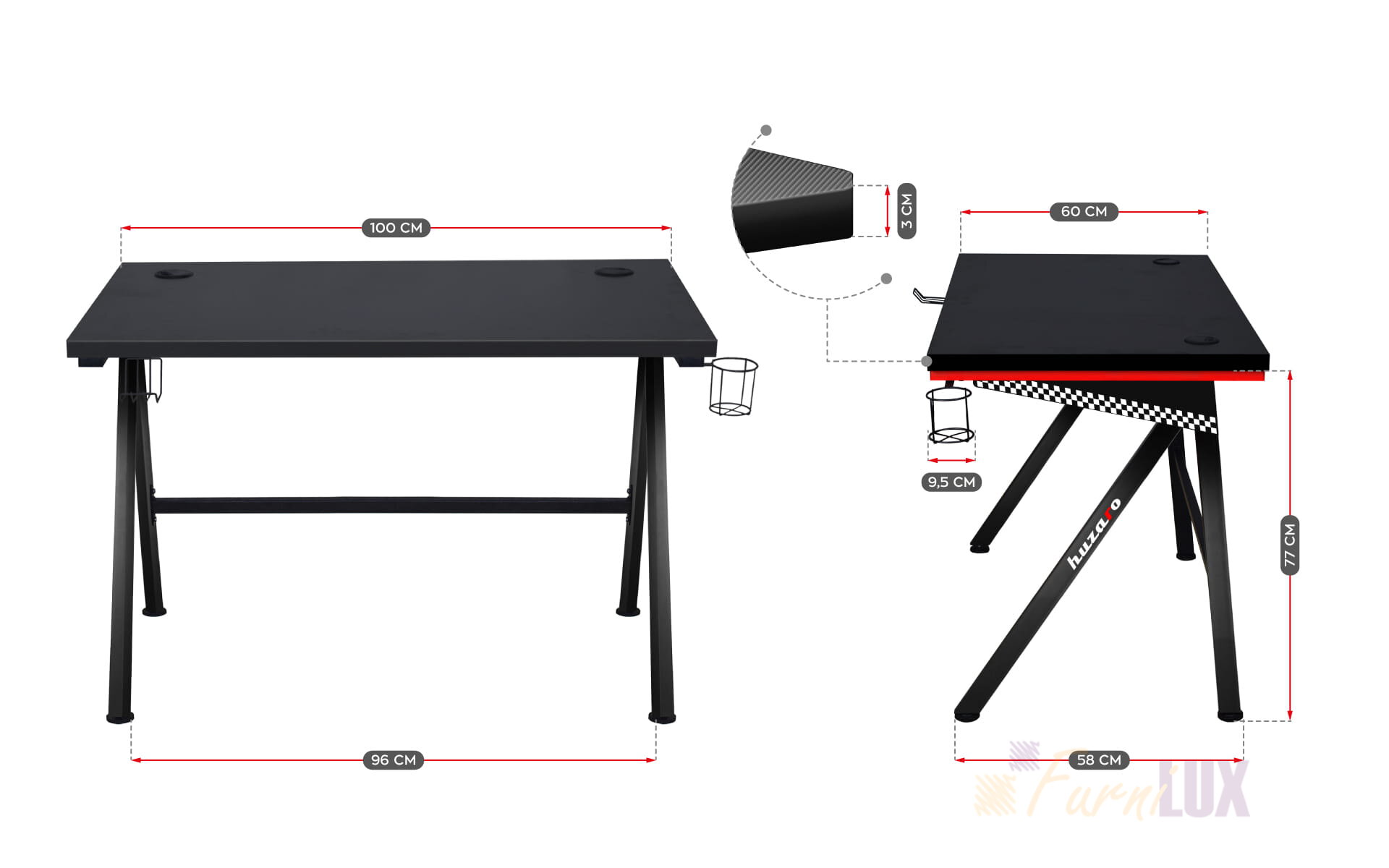 - Blat: 100 cm x 60 cm