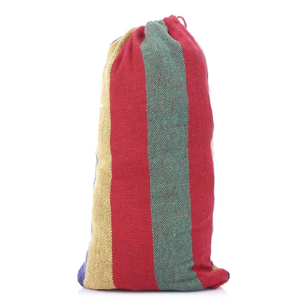 Materiał z którego został wykonany hamak: poliester, bawełna , liny nylonowe, drewniane drążki. Posiada w zestawie torbę do zapakowania.