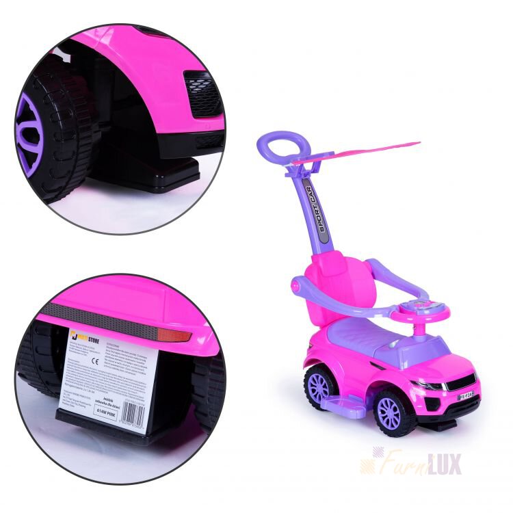 Jeździk pchacz 3w1 z daszkiem - różowy