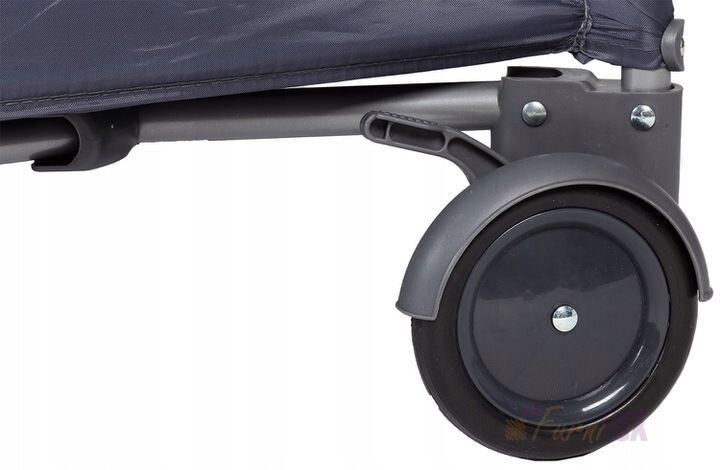 - Blokada kół - kółka z hamulcami zapobiegają przypadkowemu przemieszczaniu się łóżeczka, a solidne nóżki gwarantują stabilność.