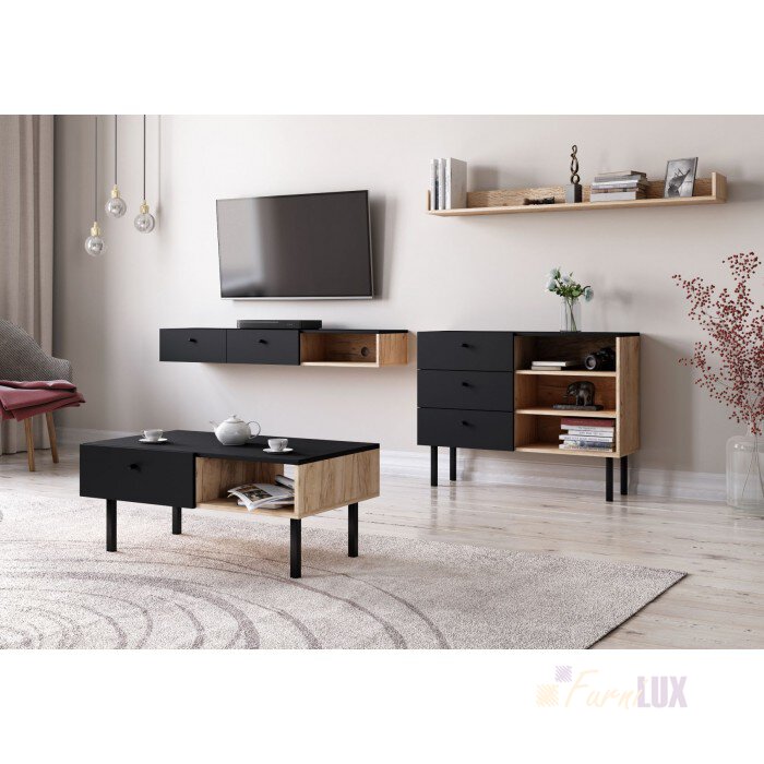 Szafka wisząca RTV "Aili" - dąb artisan/ czarny mat