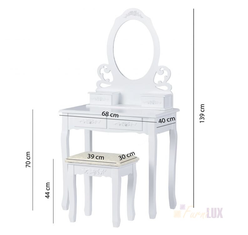 - W zestawie: Toaletka kosmetyczna + taborecik
