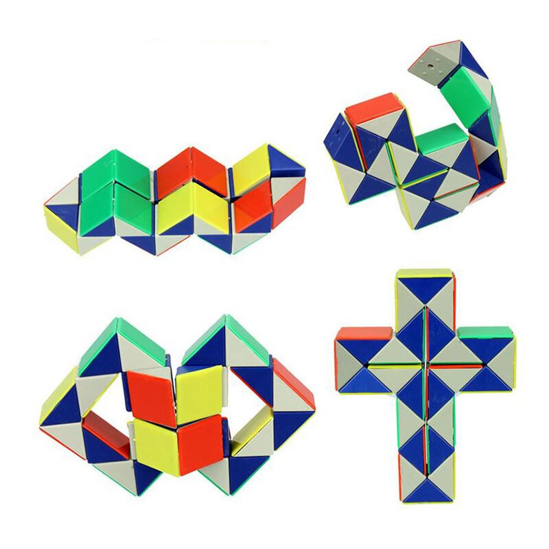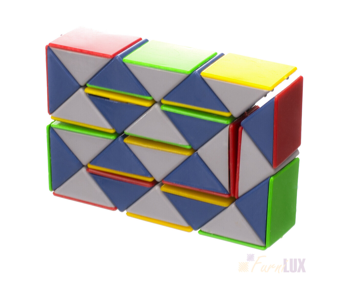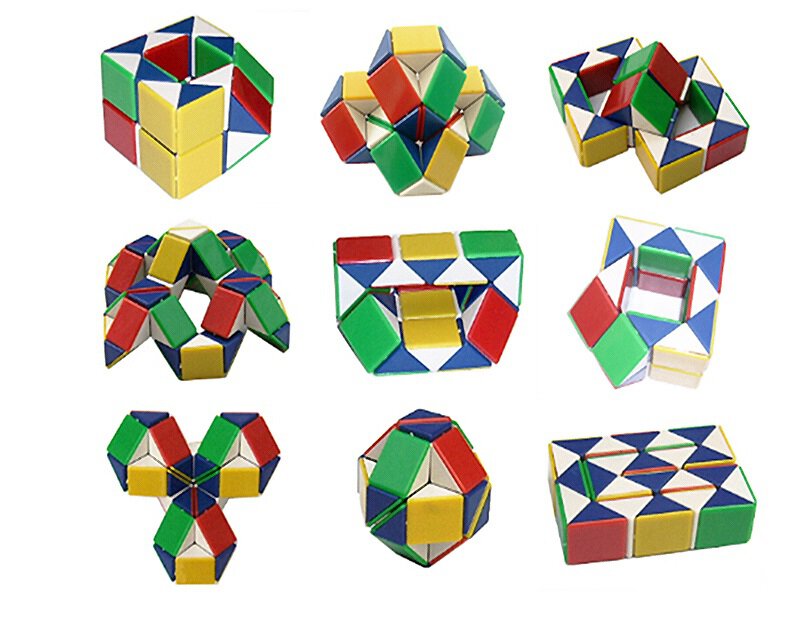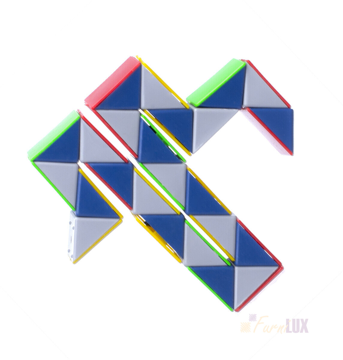 Łamigłówka składa się z plastikowych, trójkątnych segmentów połączonych przegubami. Segmenty możemy obracać względem siebie, tworząc najróżniejsze kształty i wzory. Długość: 35cm, szerokość: 2cm.